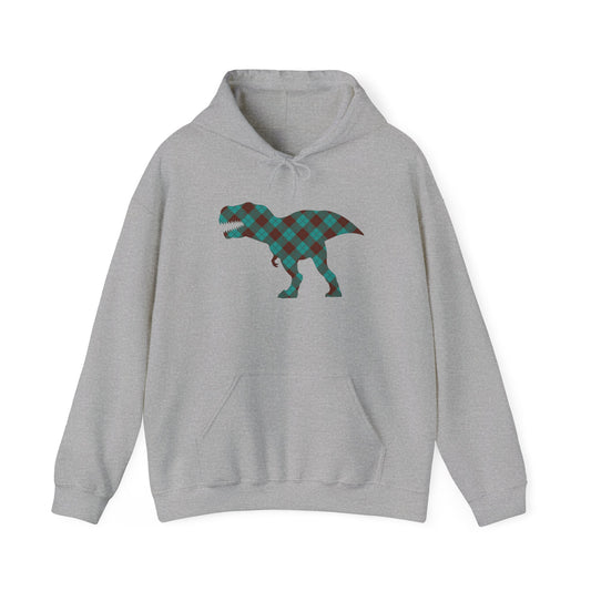 Dino Hoodie - Funny T-Rex Plaid Unisex Sweatshirt