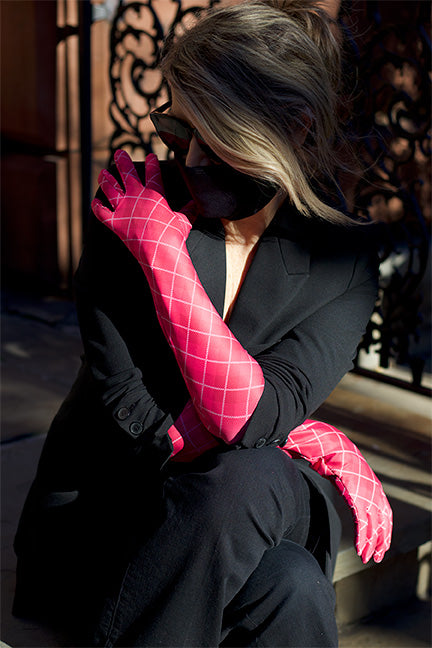Dark Pink Dinosaur Tee - T-rex!! Fashionable Dino in Yellow Plaid Print